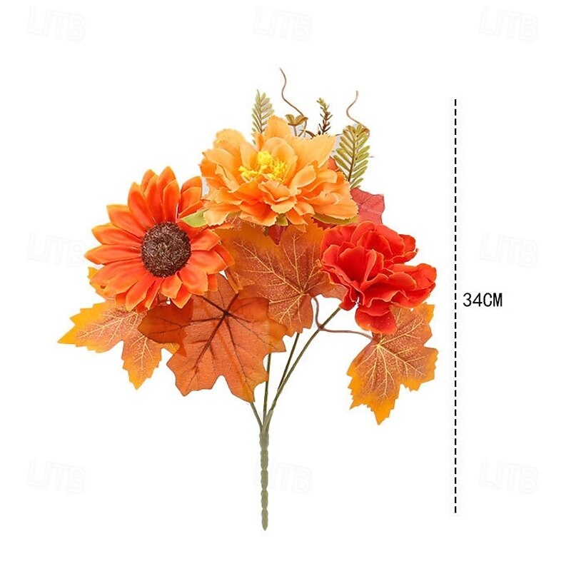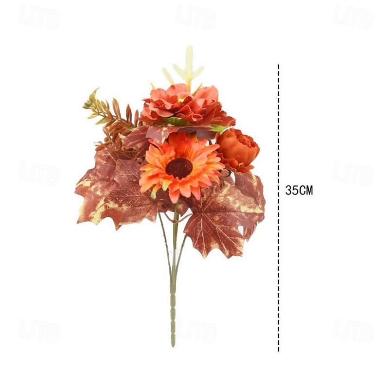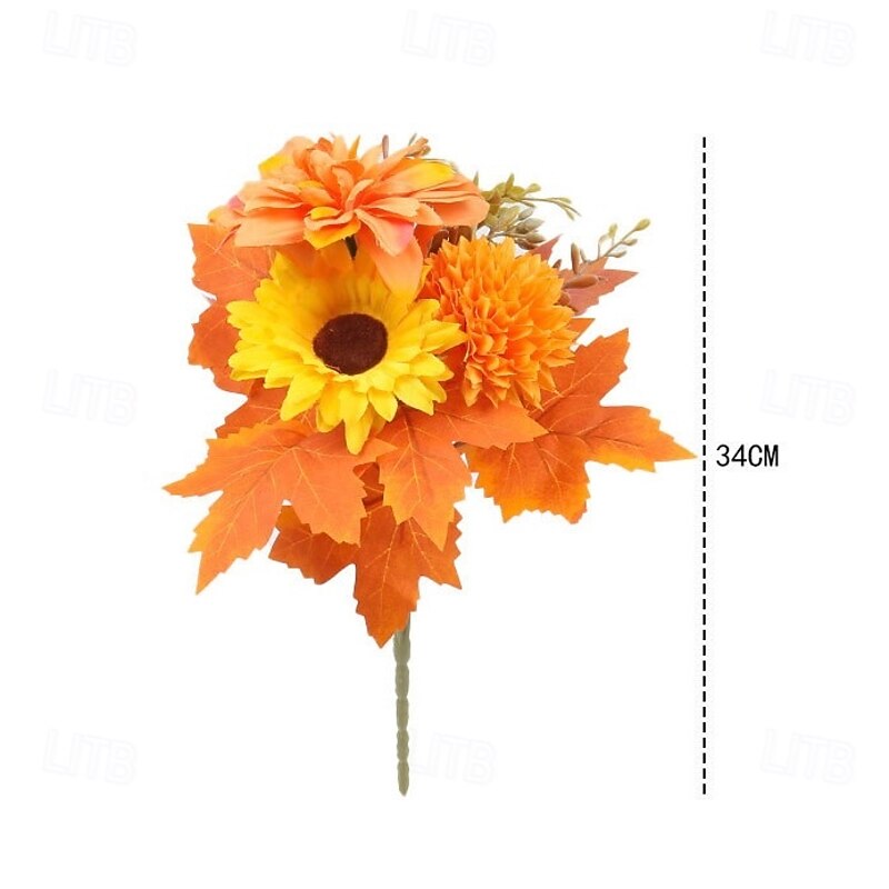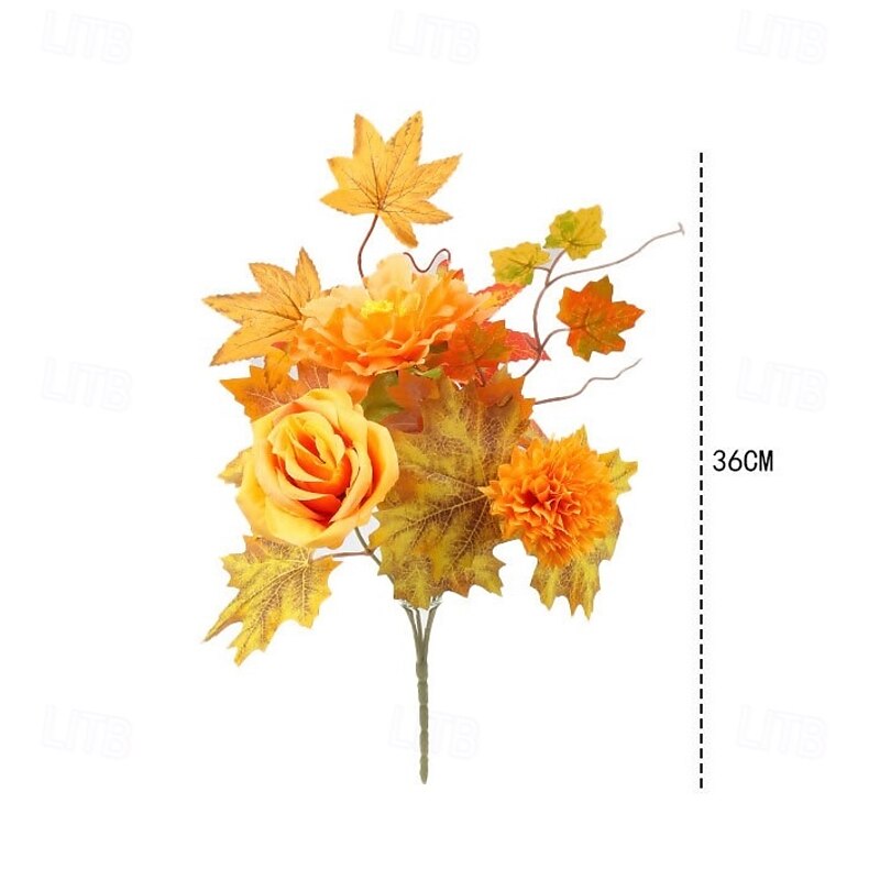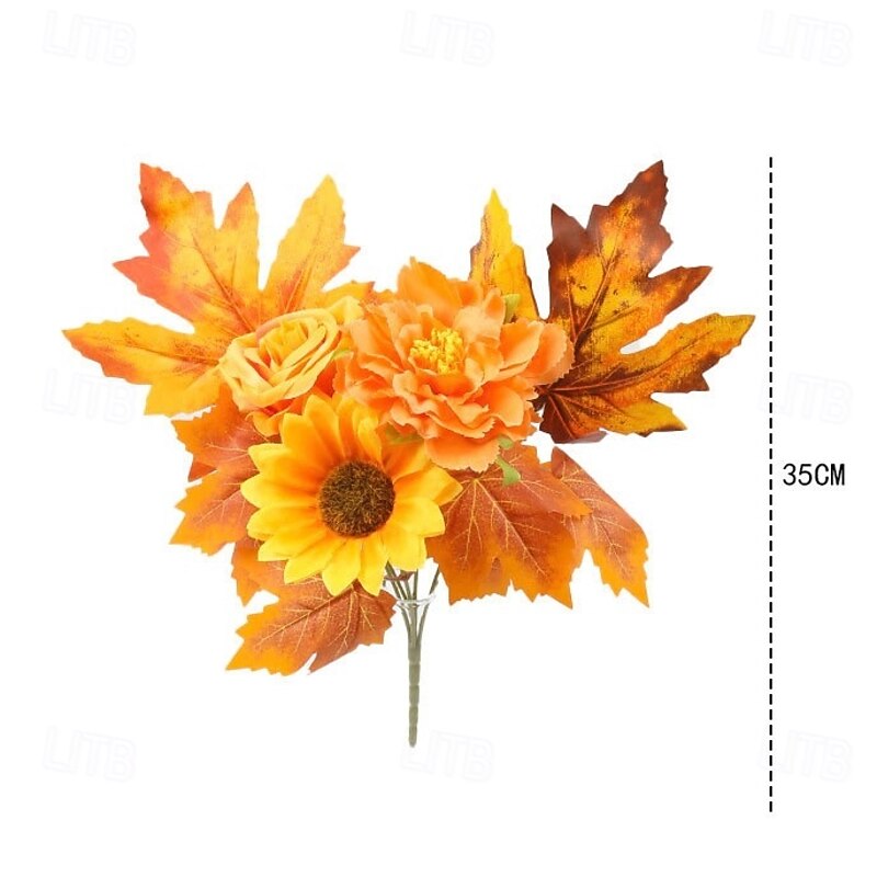 1 Bundle Fall Artificial Flower Bouquet, Thanksgiving Maple Leaf Pumpkin Wreath, Halloween Autumn Home Decor Arrangement 35