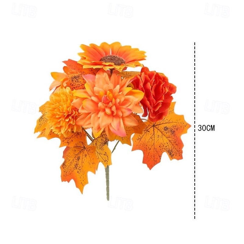 1 Bundle Fall Artificial Flower Bouquet, Thanksgiving Maple Leaf Pumpkin Wreath, Halloween Autumn Home Decor Arrangement 23