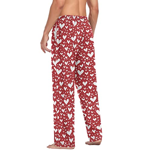 Red White Hearts Pajama Pants Mens Lounge Pants Super Soft Pajama Bottoms with Pockets 7