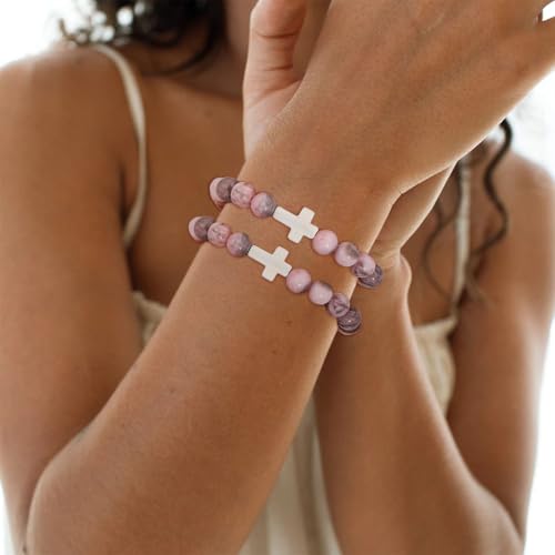 • Stretch Cross Bracelet: Hand strung with 8mm stone beads. Adjustable size is 18 cm/7. 08 in, suitable for most women, so you don't have to worry about the size anymore. High quality elastic band, not easy to break, very easy and elegant to put on and take off