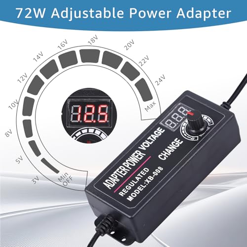 • Wide Application Scope: This 72W all-in-one AC/DC adapter is suitable for various 3~24V small household electronics like LED strips, 3D printers, smart speakers, wireless routers, etc. For indoor use only