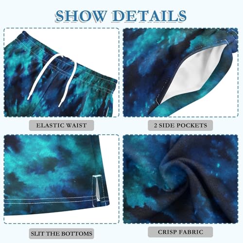 DOMIKING Blue Teal Tie Dye Kids Shorts Pull-on Boys Shorts with Elastic Waist Casual Athletic Pants for Summer Outdoor 7