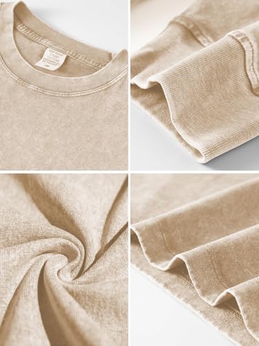 hathne Men's Vintage Acid Wash Oversized T-Shirts Long Sleeve Unisex Crewneck Cotton Tees Sweatshirt 4