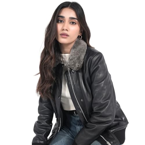 • Luxurious Quality Material: Women's Black Lambskin Leather Jacket Crafted from 100% premium lambskin, this bomber jacket exudes sophistication while offering superior comfort. The detachable faux fur collar allows you to switch up your style effortlessly, offering both fashion-forward elegance and added protection against cold weather.
