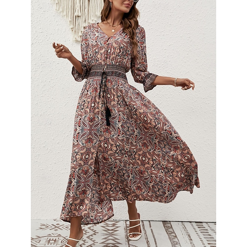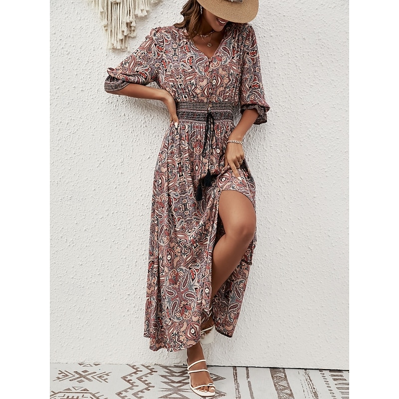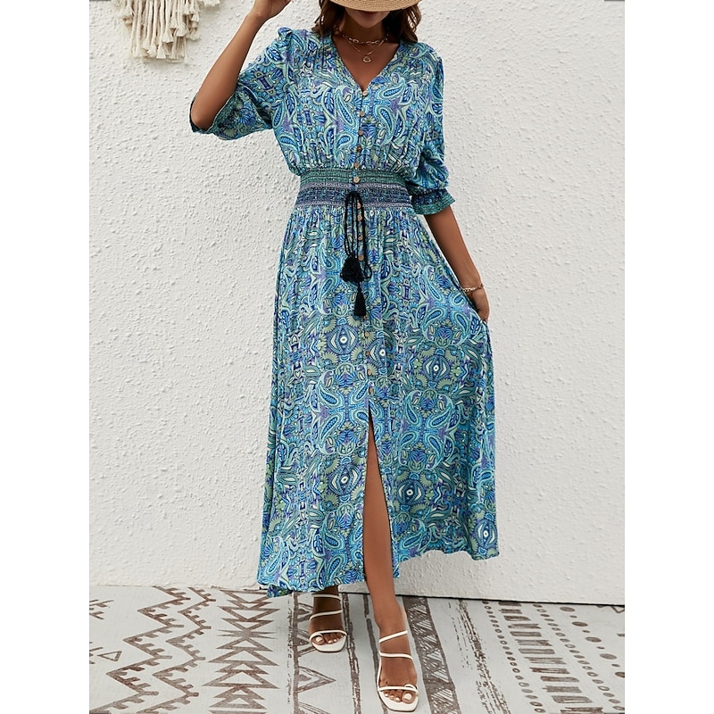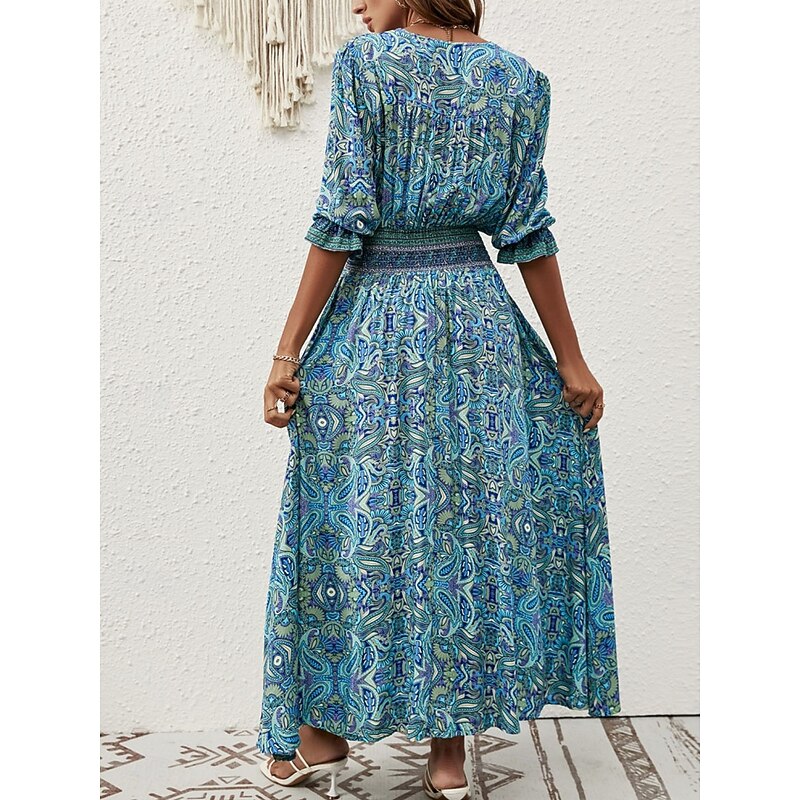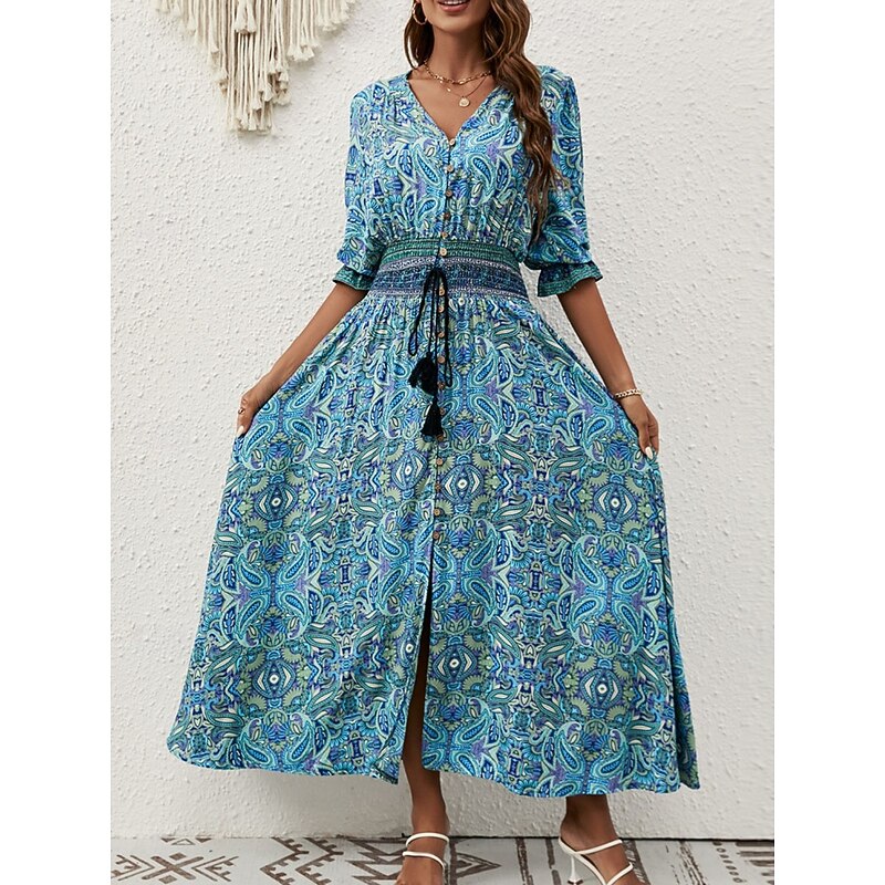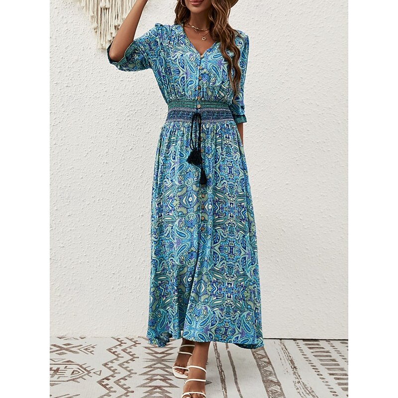 More information about Women's Maxi Dress Casual Dress Swing Dress A Line Dress Boho Dress Casual Daily Regular Fit Floral Paisley Half Sleeve V Neck Blue Brown Summer Spring Fall