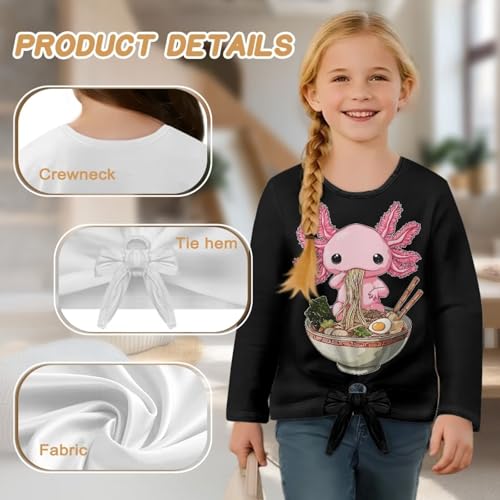 Xpyiqun T-Shirts Size 5-12 Years Long Sleeve Shirt Fall Outfits for Girls Graphic Tie Front Knot Tees Top 5