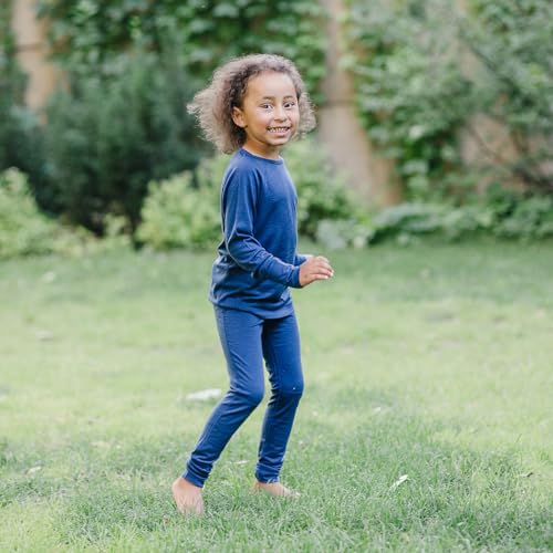 Woolino Merino Wool Base Layer for Kids - Super Soft Kids Long Sleeve Thermal Top and Leggings - All Natural Base Layer Shirt and Bottoms - Deep Blue 6