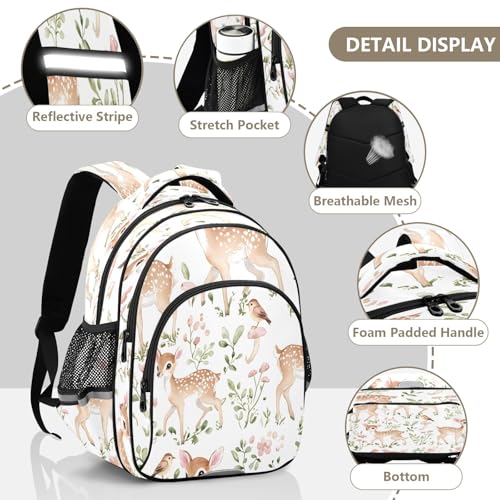 Deer Flower Mushroom Pattern Backpack For Girls Kindergarten Elementary Bookbag Lightweight Childrens School Bag,Small 7