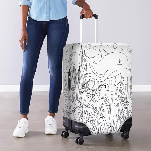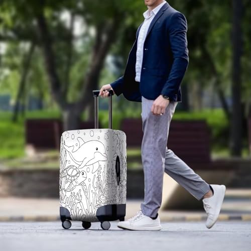 HOT ! Color in Kids Luggage Covers for Suitcase Ages 6-8 8-10 DIY Coloring Dolphin Luggage Covers for Boys with 8 Pcs Marker, Kawaii