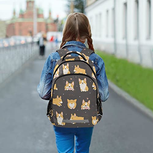 Corgi Cute Dogs School Backpack for Boys Girls Portable Wide shoulder strap Backpack Lightweight Travel Bag College Casual Daypack with Reflective Strip 6