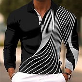 More information about Men's Geometic Line Polo Long Sleeve Polo Shirts Collared Shirts Business Casual Business Athleisure Daily Wear 3D Print Buttons Spring Fall Winter Black Red Blue