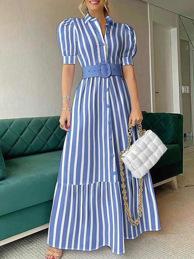 More information about Women's Long Dress Maxi Dress Shirt Dress Casual Dress Summer Dress Stylish Casual Vacation Daily Date Regular Fit Stripe Short Sleeve Lapel White Blue Summer Spring