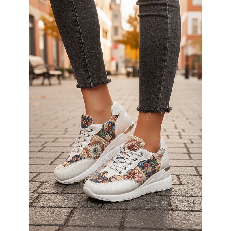 More information about Women's Gold Wedge Sneakers – Lace-Up Platform Trainers with Ethnic Print for Casual Streetwear and Weekend Travel