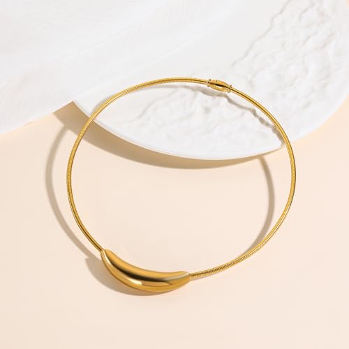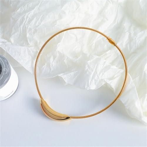 • Stylish Choker Necklace: This eye-catching necklace features a curved golden bar tube suspended from a flexible snake chain for a modern, minimalist look.