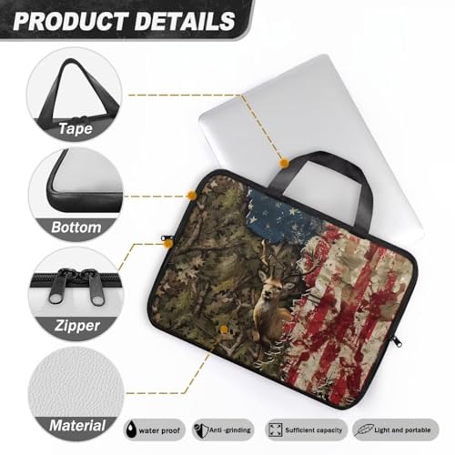 More information about Laptop Bag for Women Men Casual Carrying Bag Durable and Waterproof Briefcase Computer Case with Zipper and Handle Business Office Work Bag, Forest Camo American Flag Deer Print, 17 inch