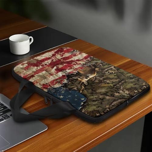 HOT ! Laptop Bag for Women Men Casual Carrying Bag Durable and Waterproof Briefcase Computer Case with Zipper and Handle Business Office Work Bag, Forest Camo American Flag Deer Print, 17 inch