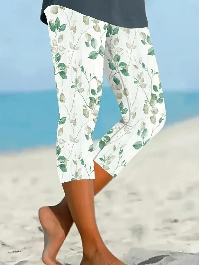 HOT ! Women's Leggings Capri Pants High Elasticity Vacation Fashion Hawaiian Ankle-Length Mid Waist Floral Printing Thermal Warm Breathable Soft Vacation Casual Daily Apple Green Summer Spring Regular Fit