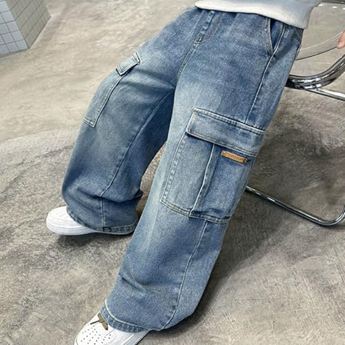 HOT ! Baggy Cargo Jeans for Teens Boys Kids Casual Wide Leg Denim Pants with Pockets Fashion Relaxed Fit Jean