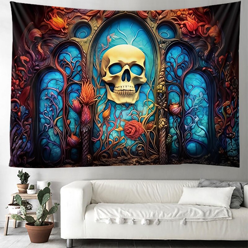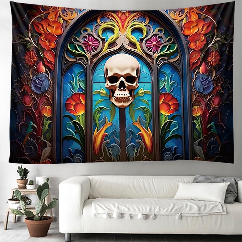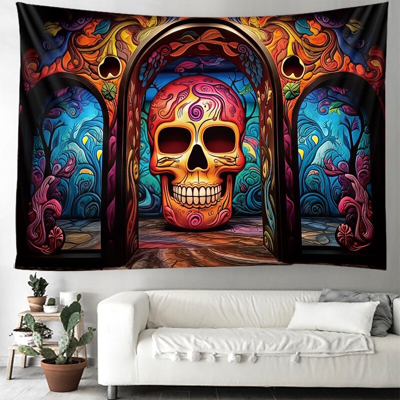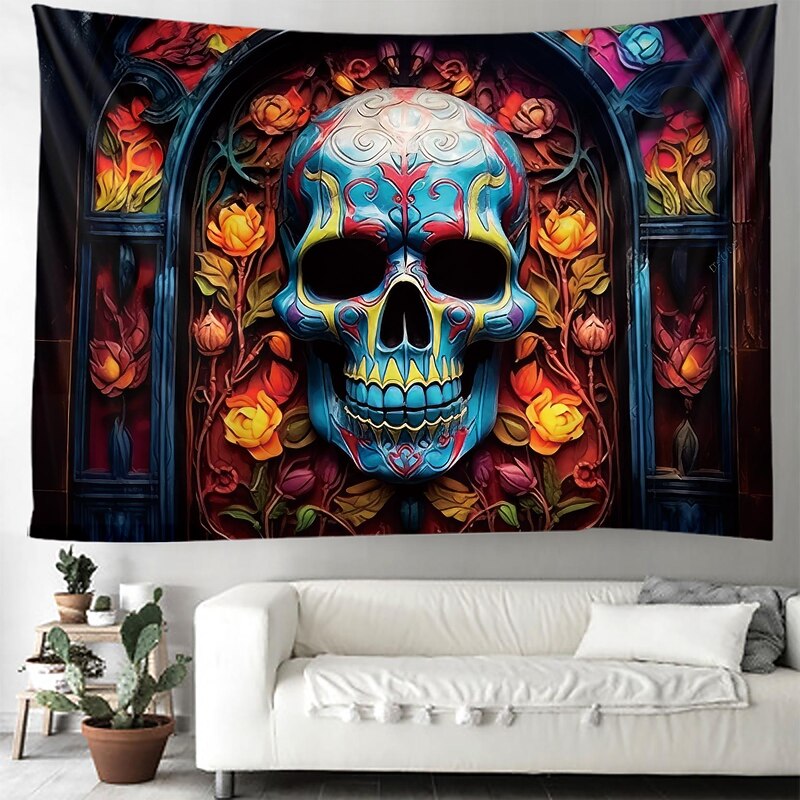Halloween Skull Hanging Tapestry Day of Dead Mexican Wall Art Large Tapestry Mural Decor Photograph Backdrop Blanket Curtain Home Bedroom Living Room Decoration