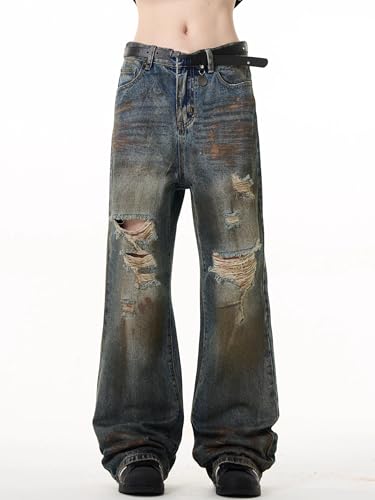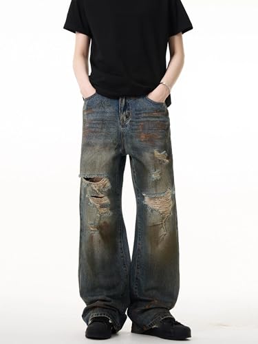 GUOYUXIAO Men's Jeans American-Style Retro Pants Ripped Trouser for Men 4