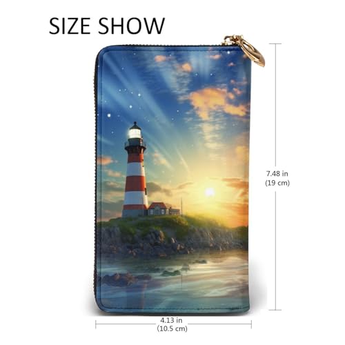 Lighthouse Wallet For Women Men Clutch Rfid Blocking Leather Wallets Large Capacity Purse Credit Card Holder Money Case With Zipper Phone Holder Long Travel Purse 5