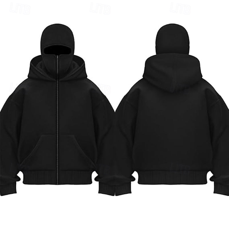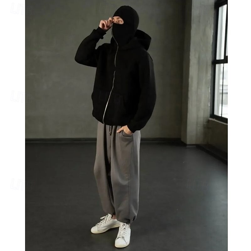 More information about Men's Hoodie Balaclava Hoodie Full Zip Ski Mask Hoodie Black White Red Dark Gray Hooded Plain Pocket Sports Outdoor Daily Holiday Polyester Streetwear Basic Casual Fall Winter Clothing Apparel Hoodies