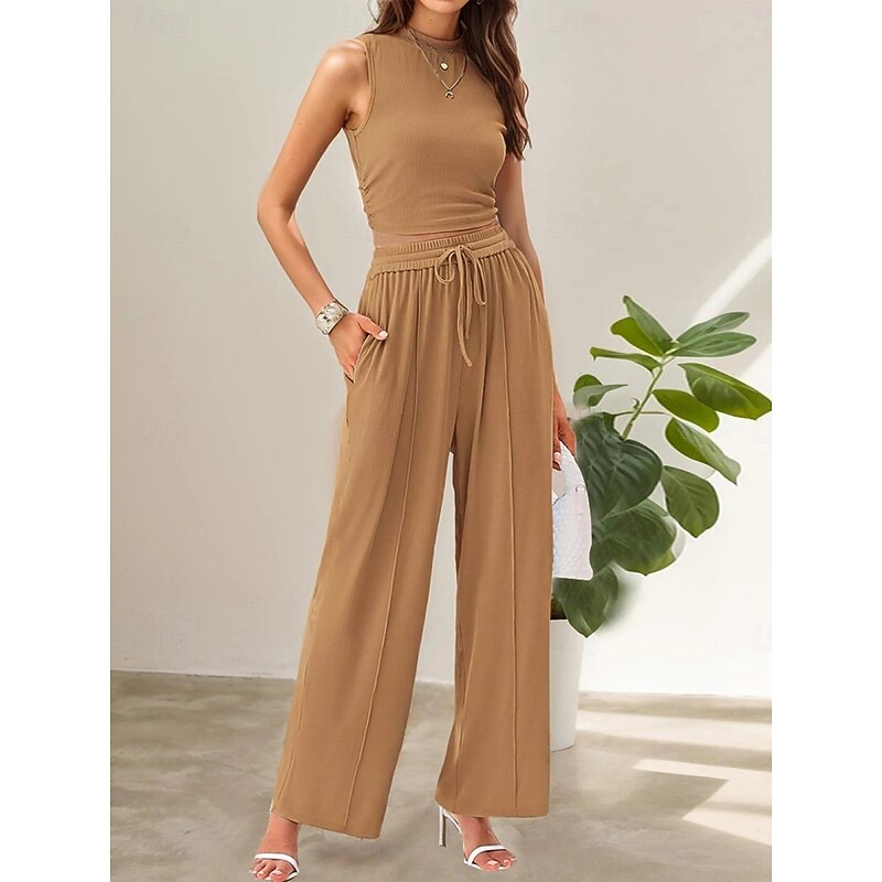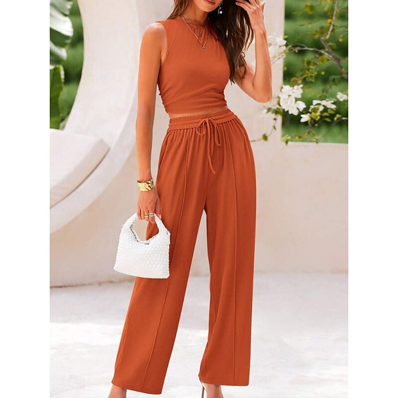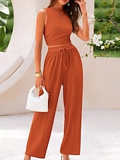 This Women's Fashion Streetwear Daily Pants Sets Sleeveless Crew Neck Solid Color Drawstring Casual Daily Blue Orange Brown Summer Regular Fit combines elegant design with practical functionality. Every detail has been carefully considered to ensure you get the leading possible experience. The supreme construction means this product will serve you well for years to come.