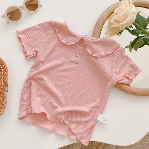 Girls Cute Solid Color T-Shirt Short Sleeve 𝐏eter Pan Collar Ribbed Shirts Causal Blouse Top Summer Clothes 2