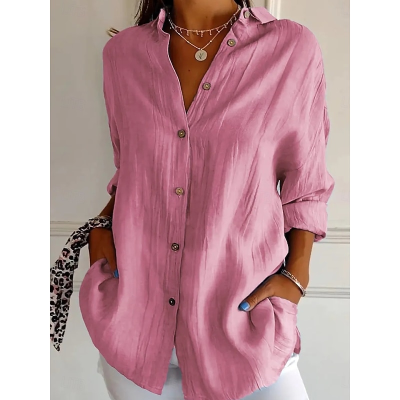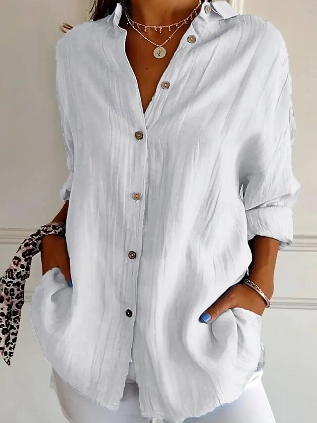More information about Women's Shirt Linen-Inspired Shirts Button Up Blouse Solid Color Basic Casual Long Sleeve Shirt Collar Regular Tops Daily Buttons White Pink Blue Spring Fall