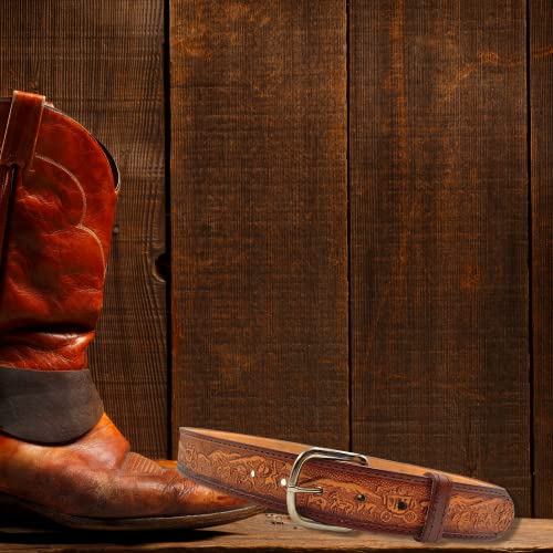 Needzo Trail Rider Decorative Leather Belt, Intricate Carved Designs, Western Cowboy Apparel for Men and Women, Utility Tool Belts, Country Themed Wild West Gifts, Made in Mexico, Size 36 6