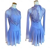 More information about Figure Skating Dress Women's Girls' Ice Skating Dress Sky Blue Thumbhole Halo Dyeing High Elasticity Professional Competition Skating Wear Thermal Warm Crystal / Rhinestone Long Sleeve Ice Skating