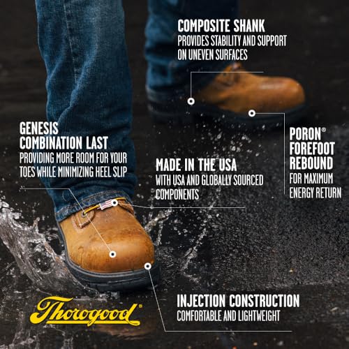 HOT ! Thorogood 8” Waterproof Work Boots for Men - Nano Composite Toe - Genesis Series - Full-Grain Leather with Comfort Insoles and Slip-Resistant Outsoles