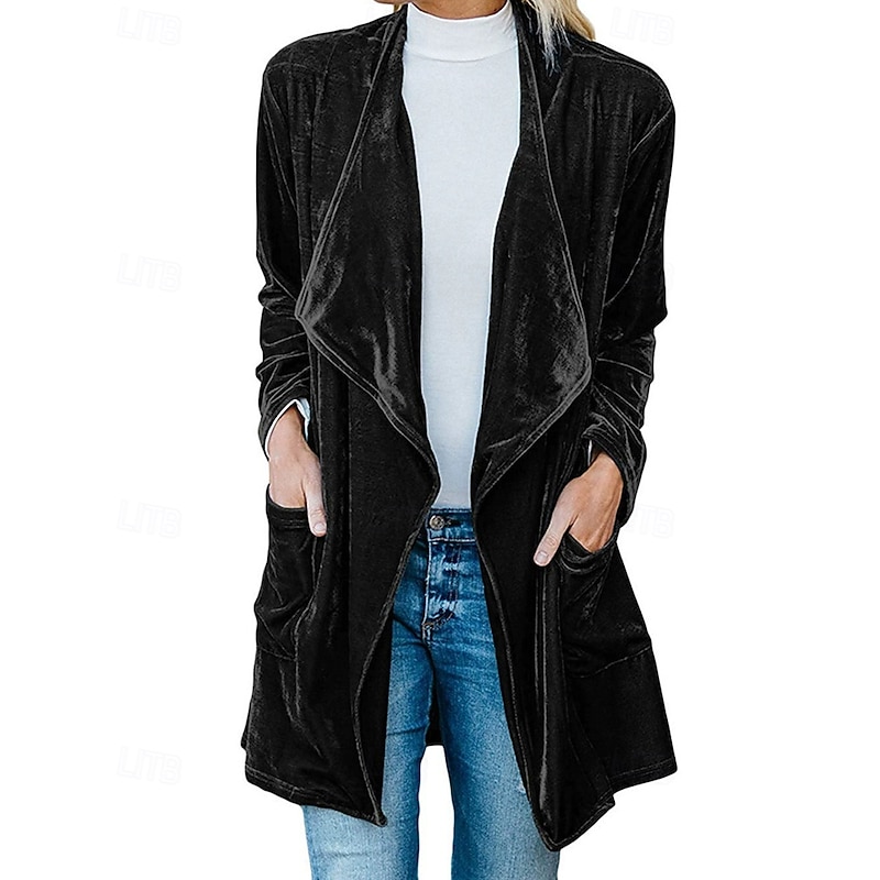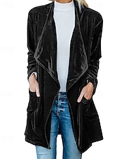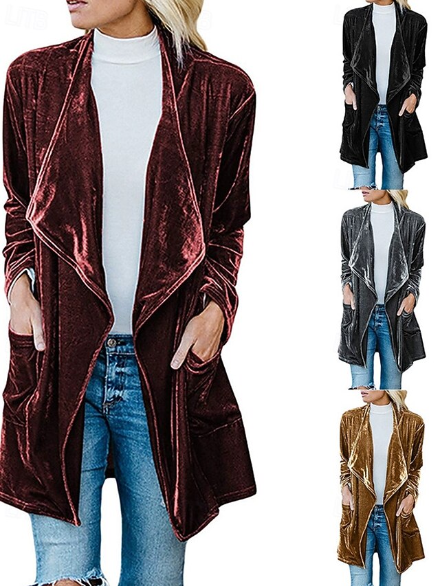 More information about Women's Casual Jacket Warm Comfortable Pocket Fashion Outdoor Plain Going out Weekend Single Breasted Regular Lapel Regular Fit Long Sleeve Outerwear Black Yellow Wine Fall Winter