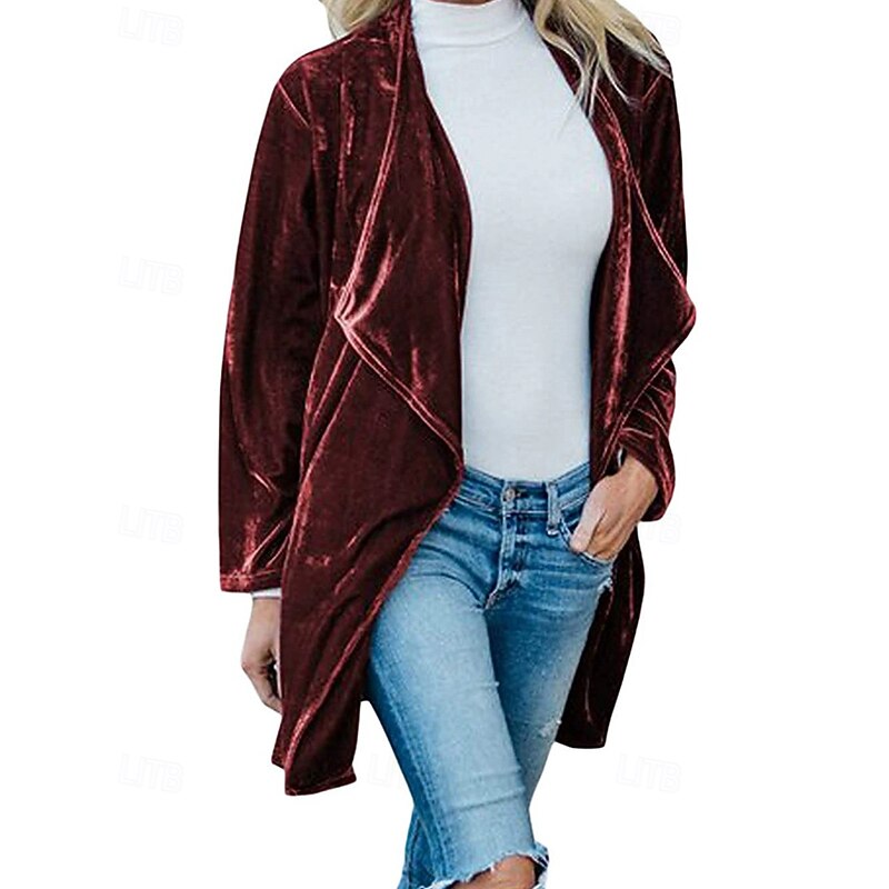 Women's Casual Jacket Warm Comfortable Pocket Fashion Outdoor Plain Going out Weekend Single Breasted Regular Lapel Regular Fit Long Sleeve Outerwear Black Yellow Wine Fall Winter 7