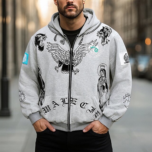 More information about Men's Graphic Eagle Hoodie Fashion Daily Hooded Vacation Party Streetwear Black Gray Zip Up Pocket Printing Spring Fall Designer