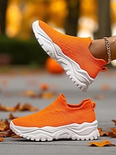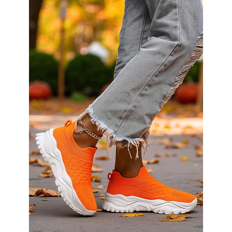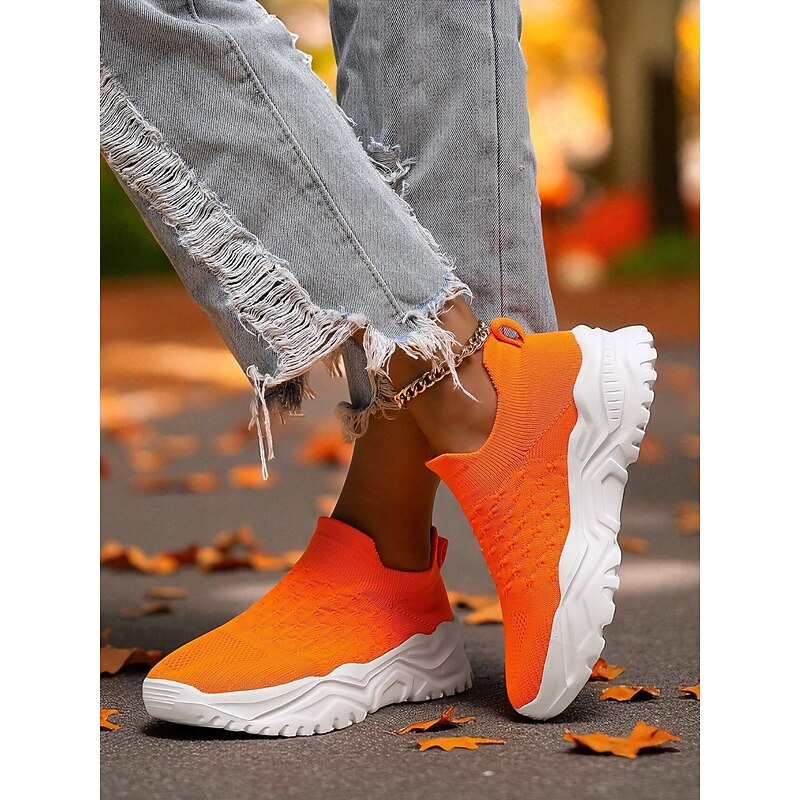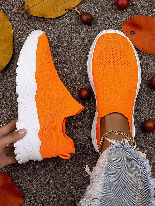 $32.99 - Women's Orange Slip-On Flyknit Sneakers – Breathable Mesh Lightweight Walking Shoes with Chunky Sole for Casual and Sport 2025. Shop for cheap Shoes For Women online? Buy at lightinthebox.com on sale today!