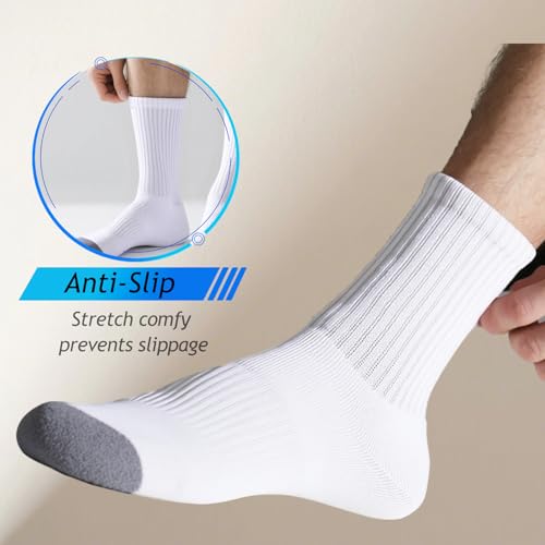 Men's Running Hiking Socks - Breathable, Seamless, Moisture-Wicking for Outdoor Sports, 5 Packs (White/Black) 7
