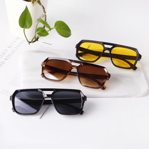 VIA LEECA Designer Square Aviator Sunglasses for Women Men Double Bridge Large Thick Frame Retro Eyewear 3
