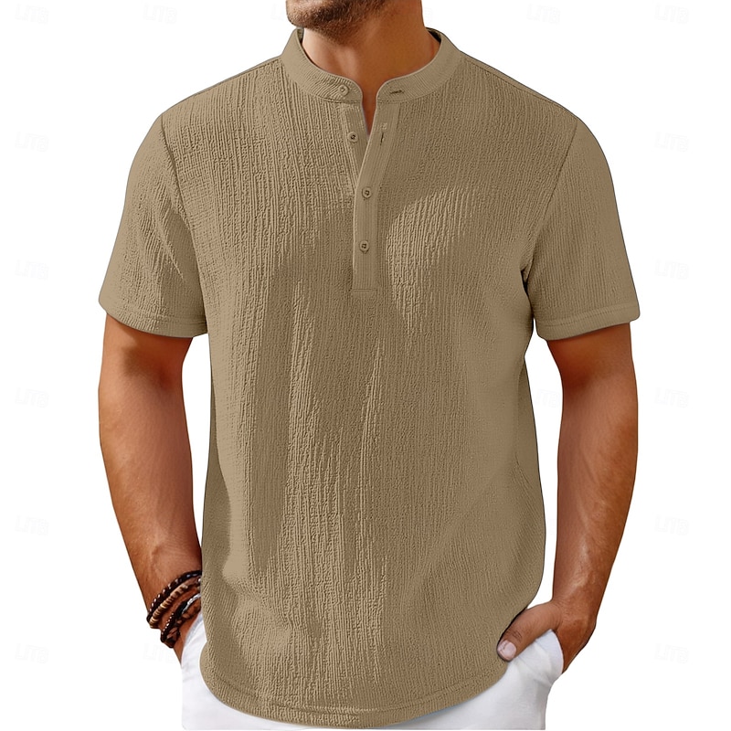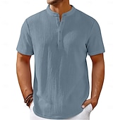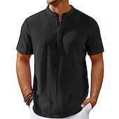 More information about Men's Shirt Summer Shirt Casual Shirt Beach Shirt Button Up Shirt Black White Navy Blue khaki Beige Short Sleeve Plain Band Collar Vacation Daily Clothing Apparel Fashion Casual Comfortable
