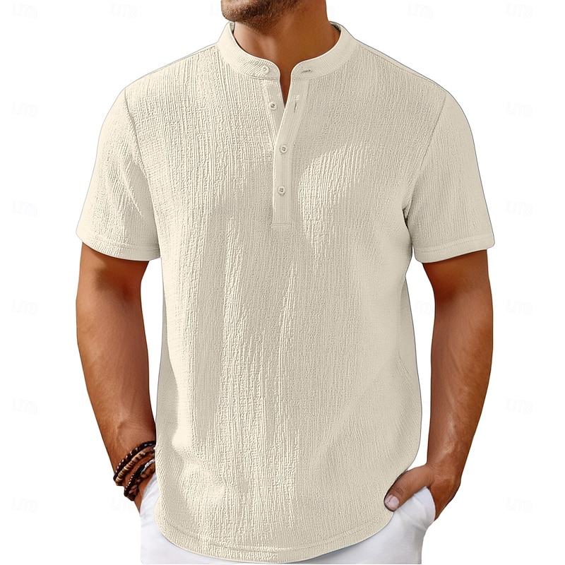 HOT ! Men's Shirt Summer Shirt Casual Shirt Beach Shirt Button Up Shirt Black White Navy Blue khaki Beige Short Sleeve Plain Band Collar Vacation Daily Clothing Apparel Fashion Casual Comfortable