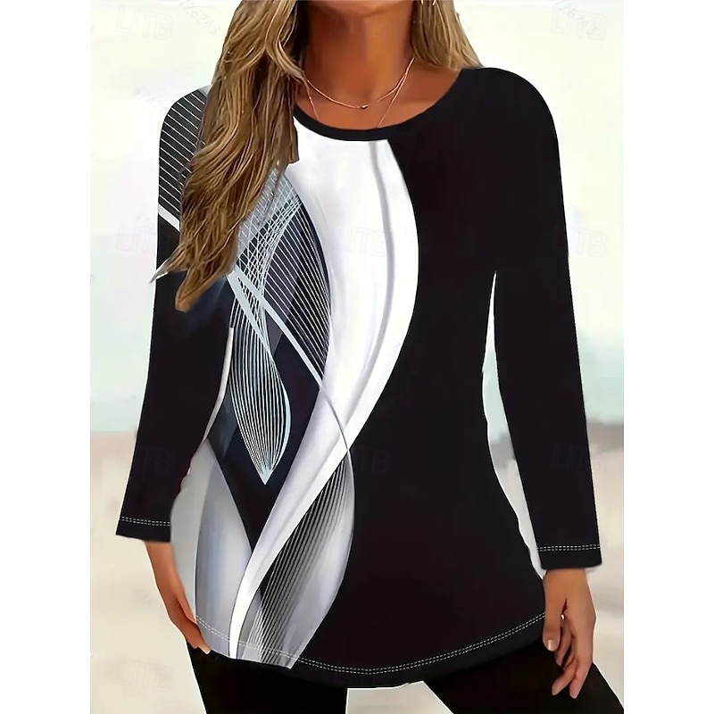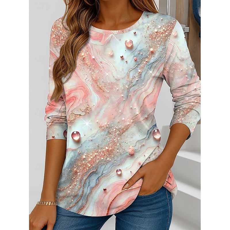Why Choose Women's T shirt Long Sleeve Crew Neck Long Sleeve Tunic Ombre Marble Elegant Vintage Regular Tops Daily Going out Weekend Print Black White Pink Navy Blue Blue Prefall?