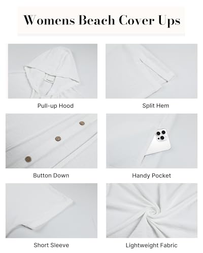 • Hooded Beach Cover Up: The hooded with drawcord cover-up features a button-down design, complete with short sleeves, a side-slit hem, and an above-knee length for a chic, casual look. The hood provides good protection for the neck and wet hair