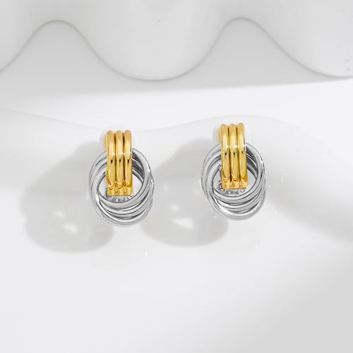 Two Tone Clip On Earrings for Women Statement Gold Silver Small Twisted Knot Clip On Earrings 5