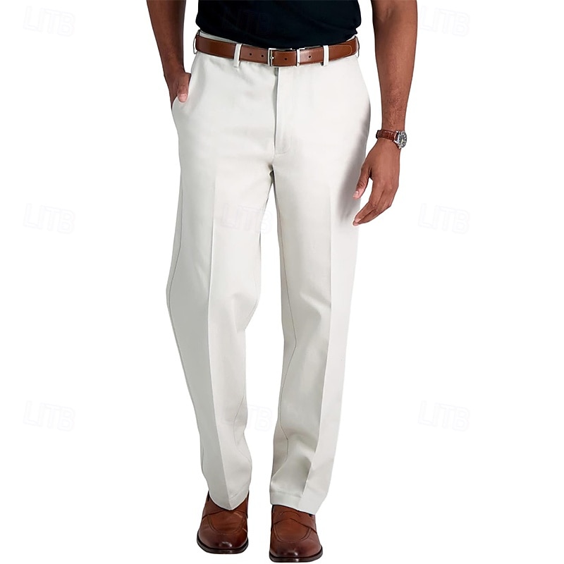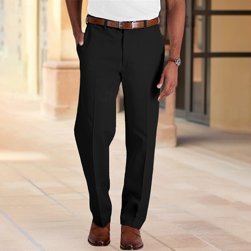 Highlights [Fabric] : Expertly crafted from a high-quality cotton blend, these men's trousers offer a soft and breathable wearing experience, ensuring comfort throughout the day. The durable material is perfect for long-term use, making it a reliable choice for any wardrobe. [Fit] : Designed with a regular fit, these trousers provide a modern and polished silhouette while allowing ease of movement. The tapered cut adds a contemporary touch, perfect for maintaining a stylish appearance whether you're seated or on the go. [Design Highlights] : These trousers feature a classic zip and button closure with convenient belt loops, adding versatility for styling with your favorite accessories. The plain pattern and mid-waist design offer a clean and streamlined look, making them an essential piece for any modern gentleman. [Occasions] : Ideal for a range of settings, from daily casual wear to business occasions. Whether it's a day at the office or a casual outing, these pants effortlessly blend fashion with functionality, making them an adaptable choice for various events. [Size] : Available in a broad range of sizes, including S, M, L, XL, XXL, and 3XL, these trousers are designed to cater to different body types, ensuring a comfortable fit for everyone.