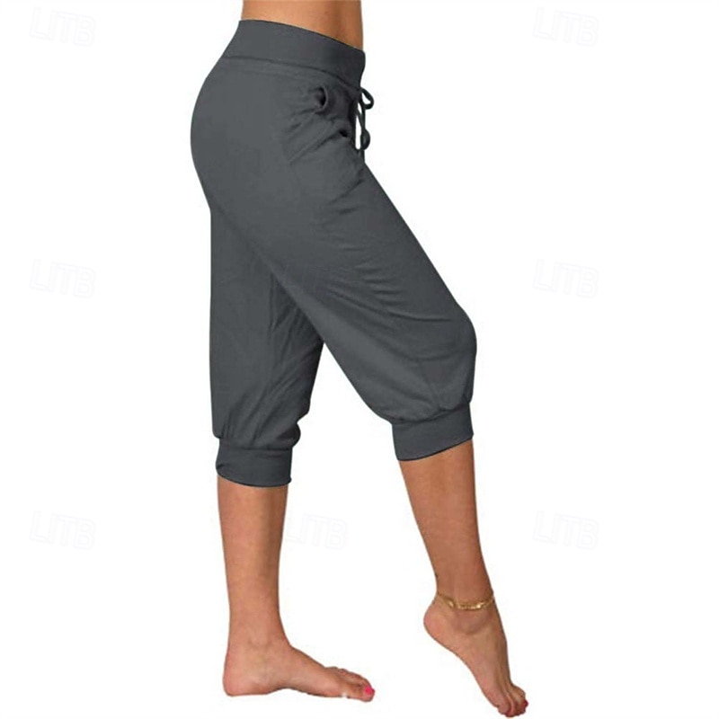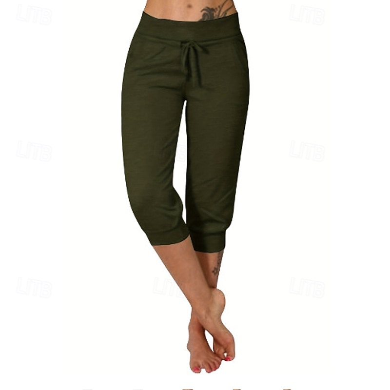 More information about Women's Capri Pants Sunday Shorts Streetwear Casual Calf-Length Mid Waist Plain Elastic Waist Drawstring Breathability Soft Micro-elastic Vacation Street Daily Wear Black Pink Navy Blue Green Summer