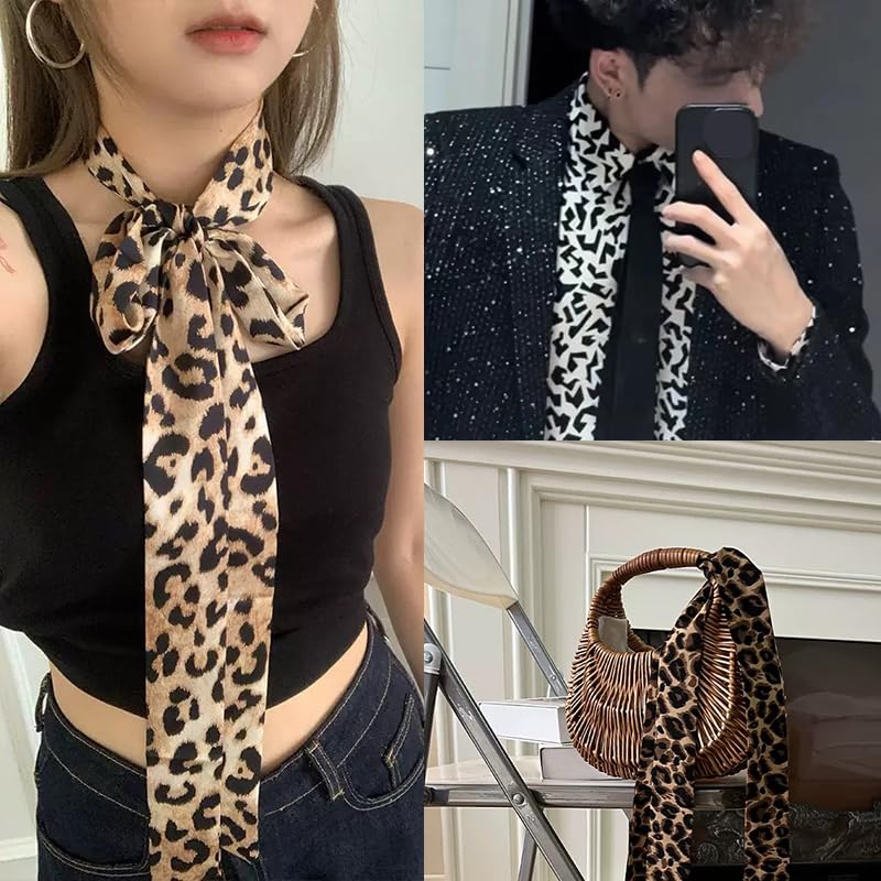 • Fashion Leopard Neckerchief Scarf for Women Girls: this thin leopard handbag scarf set can also be worn as a waist scarf belt, wearing in your waist and adding a trendy and fashionable element to your outfits, not only can these silk scarf neck scarves be worn around the neck, but also can be used as a leopard handbag scarf tie for women, satin scarf for purse handle