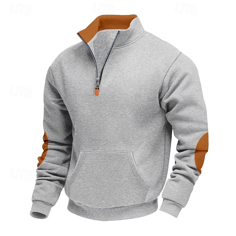 More information about Men's Sweatshirt Pullover Hoodie Sweatshirt Pullover Quarter Zip Sweatshirt Black Army Green Navy Blue Camel Light Grey Standing Collar Plain Patchwork Pocket Color Block Sports & Outdoor Casual Daily