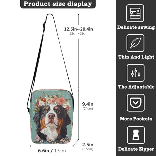 MCHIVER Small Messenger Bag Mountain Dog Flowers Teal Crossbody Bag for Men Women Purse Fanny Pack for Phone Passport 7