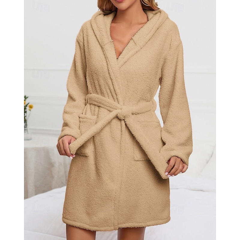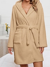 More information about Women's Pajamas Robe Fashion Casual Pure Color Lace Vacation Home Bed Long Sleeve Hoodie Pink Khaki Fall Winter Tailored Fit