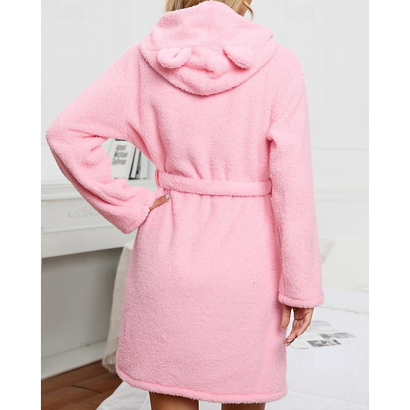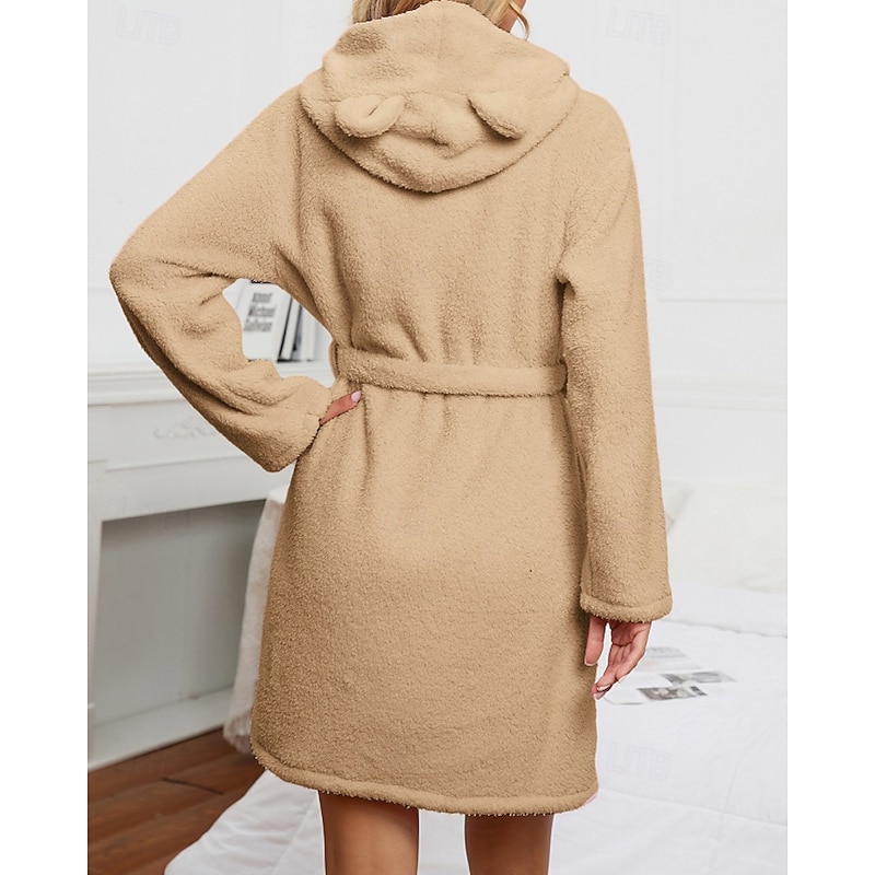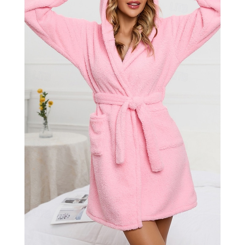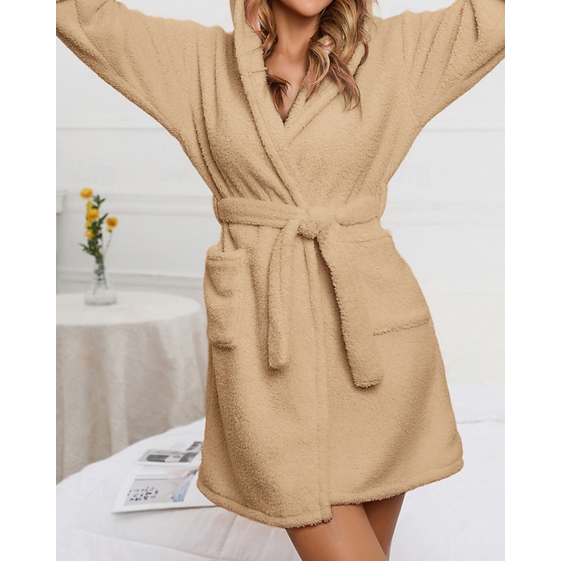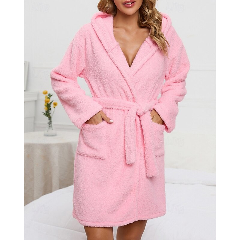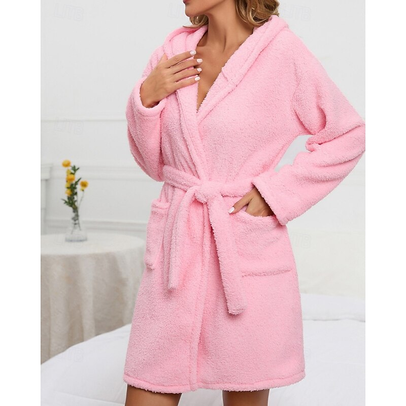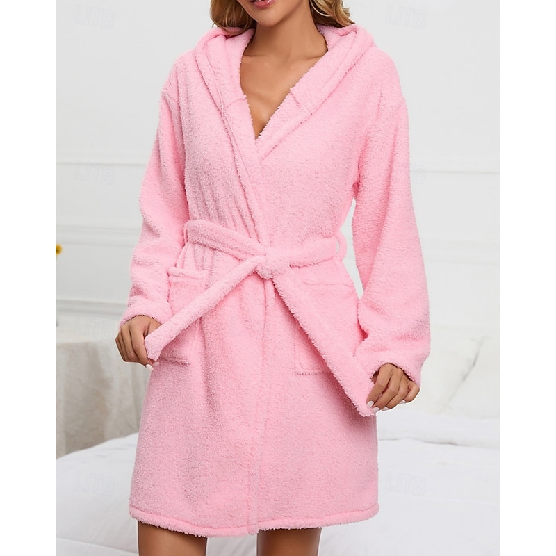 Women's Pajamas Robe Fashion Casual Pure Color Lace Vacation Home Bed Long Sleeve Hoodie Pink Khaki Fall Winter Tailored Fit 11